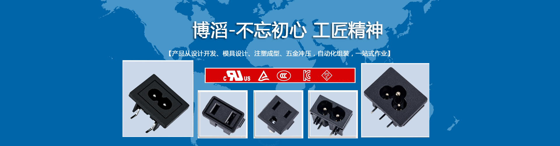 廣東博滔電子有限公司成立于 2018年,公司主要研發和生產各種器具輸入插座、器具耦合器等各種電源插座,產品廣泛應用于電腦及周邊、家用電器、工業設備、儀器儀表、通訊設備、智能家居等領域。 我司產品均通過美國UL和CUL 、德國TUV 、 韓國KC 、日本PSE、中國CCC 等認證。所有產品均能通過RoHs和Reach環保檢測。客戶主要分布在中國大陸、臺灣、日本、韓國、東南亞、北美及歐洲地區,多年來公司產品得到世界各地客戶的肯定和信賴……